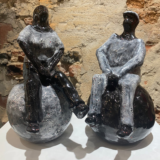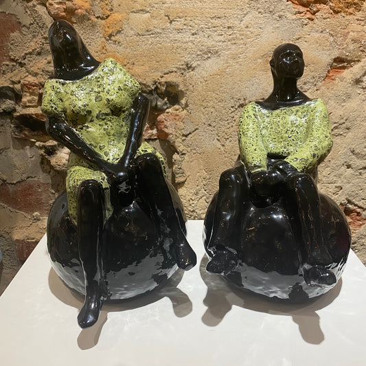 Lopke - Zwart met glazuur en koudglazuur zwart- groen gemêleerd - Medium