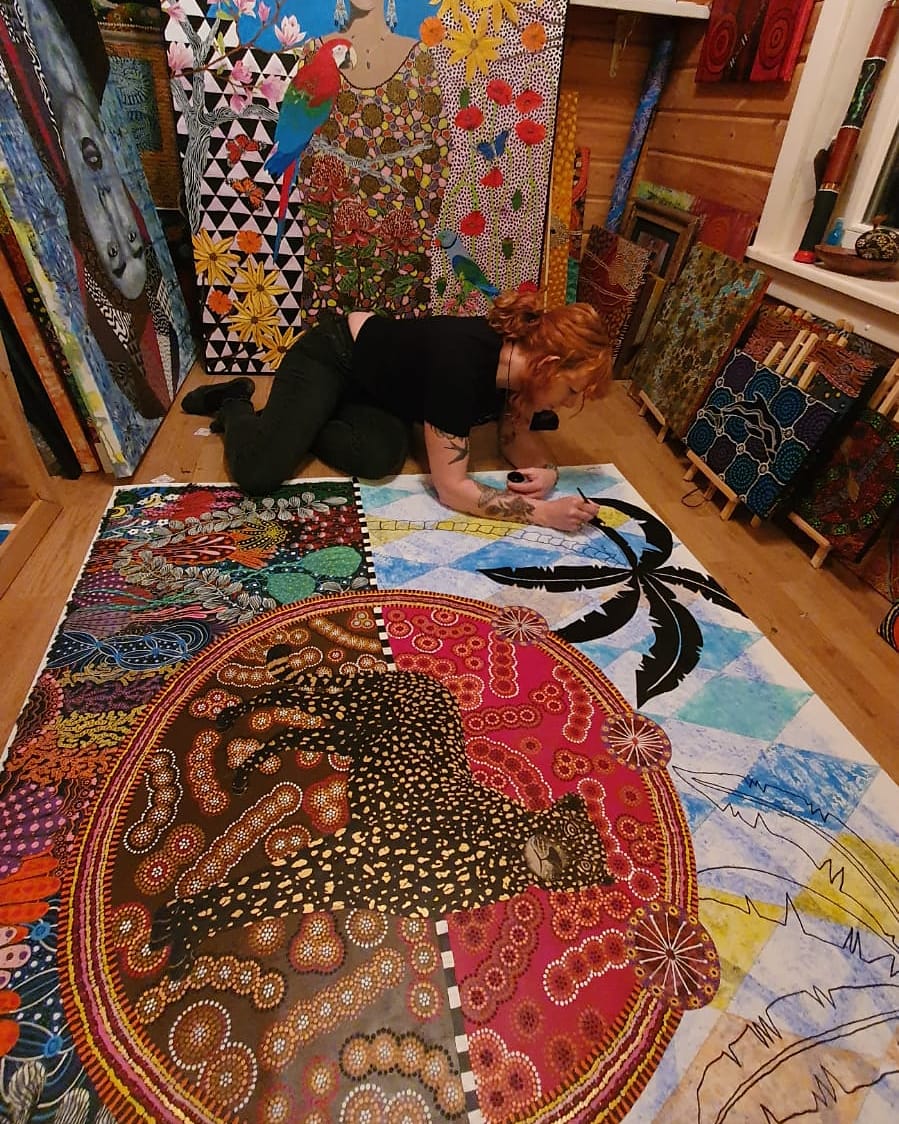De eerste jaren waren het vooral dot painting schilderijen. Deze inspiratie kwam van haar rondreis door Australië die ze in 96/97 heeft gemaakt,waar ze in contact kwam met de aboriginal art. Na de dot painting periode zocht ze naar meer uitdaging en begon ze met portretten te schilderen, gecombineerd met botanische en decoratieve elementen.