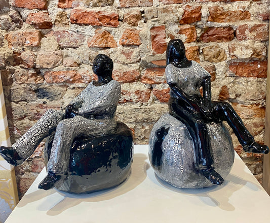 Lopke – Schwarz mit Glasur und Kaltglasur – Schwarz-Weiß marmoriert – Medium / Mittel