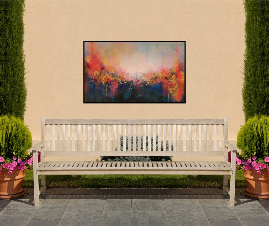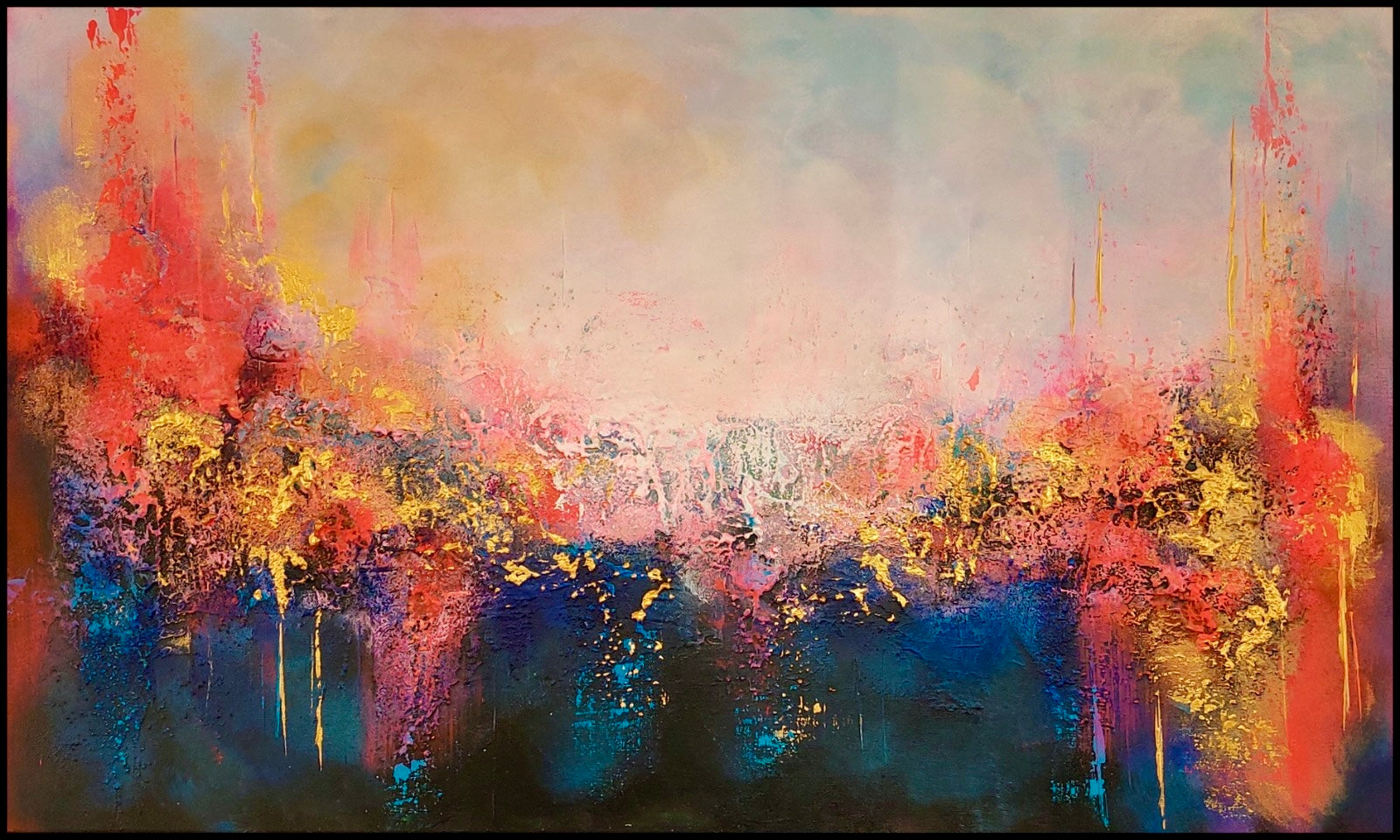 Dromerig, met accenten van goud en veel textuur. 3D doek met geschilderde lijst.