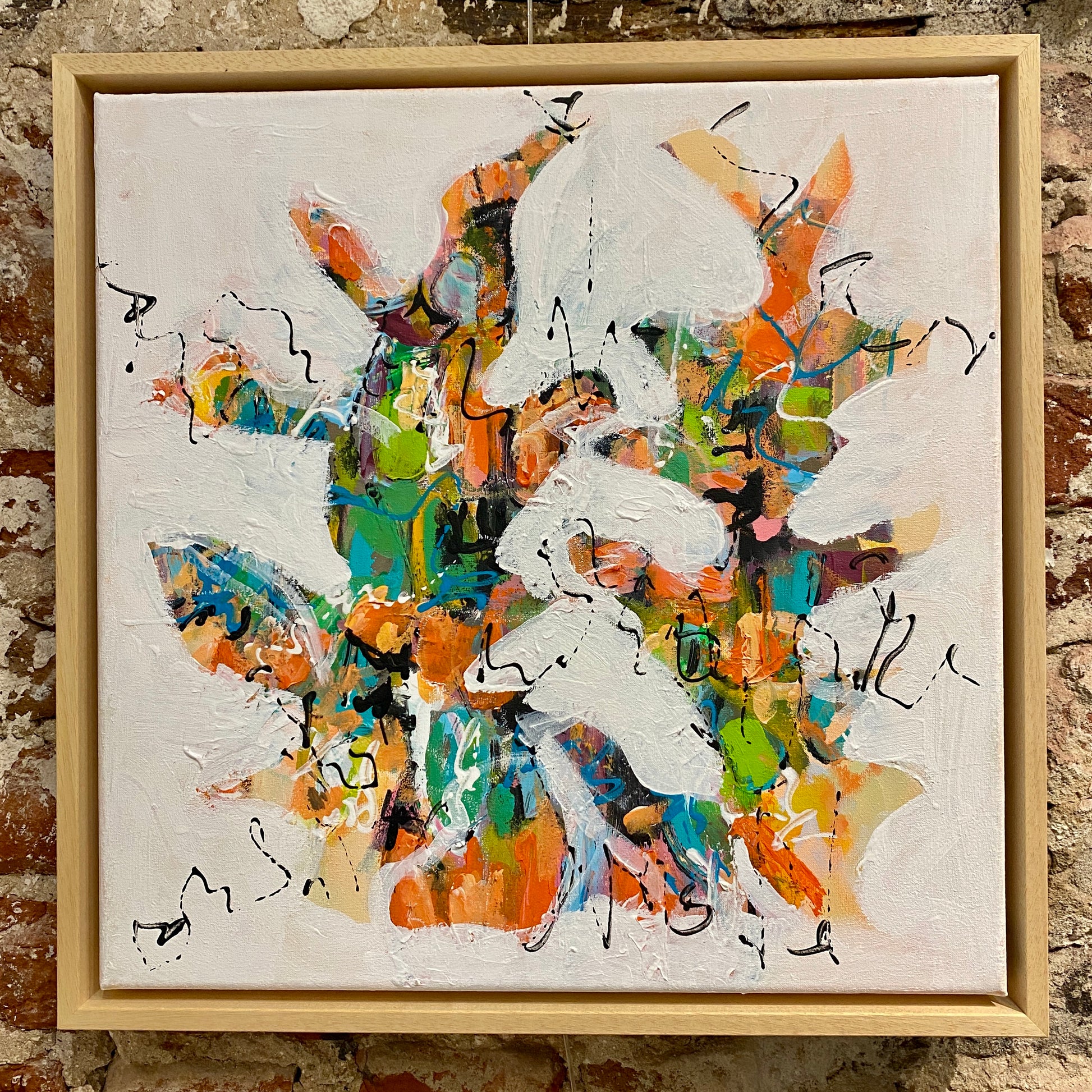 Ingrid maakt Abstracte kleurrijke werken; de beelden en sferen in haar gedachten vertaalt ze in kleur, vorm en compositie. Het werk is ingelijst in blanke baklijst en kan ook samen met "Stillness" als tweeluik verkocht worden.