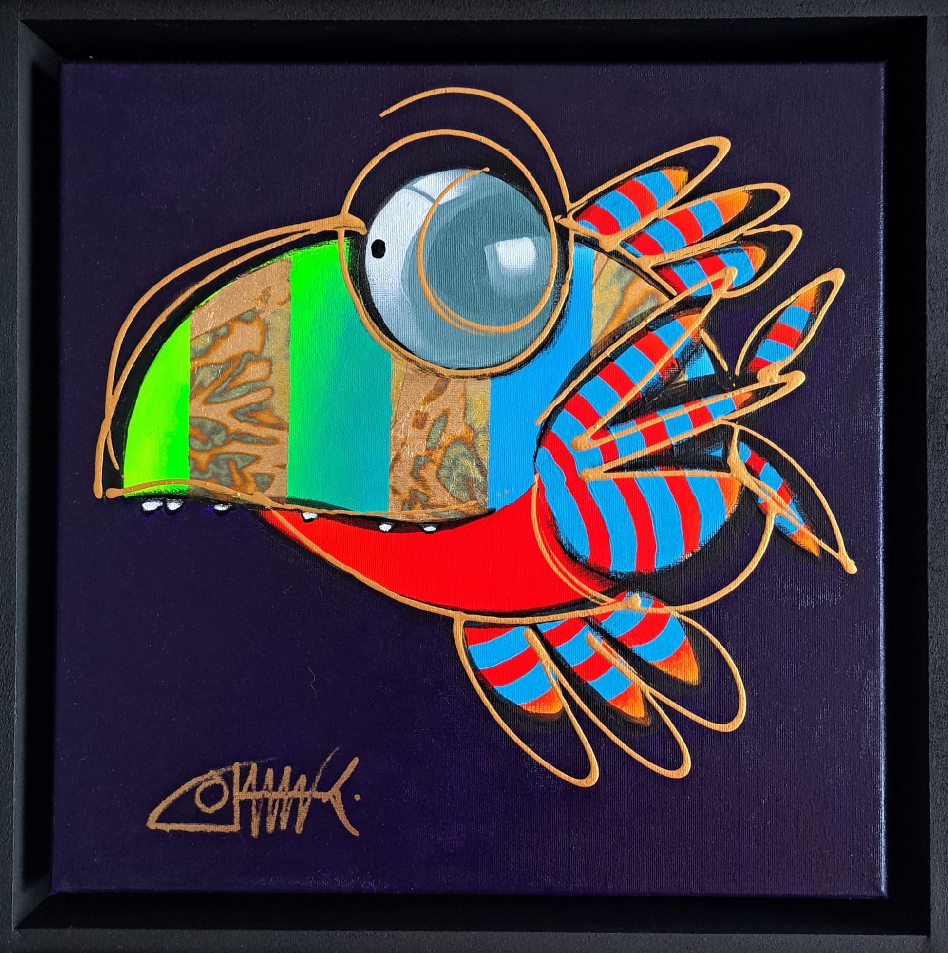 Acryl op linnen, in baklijst.