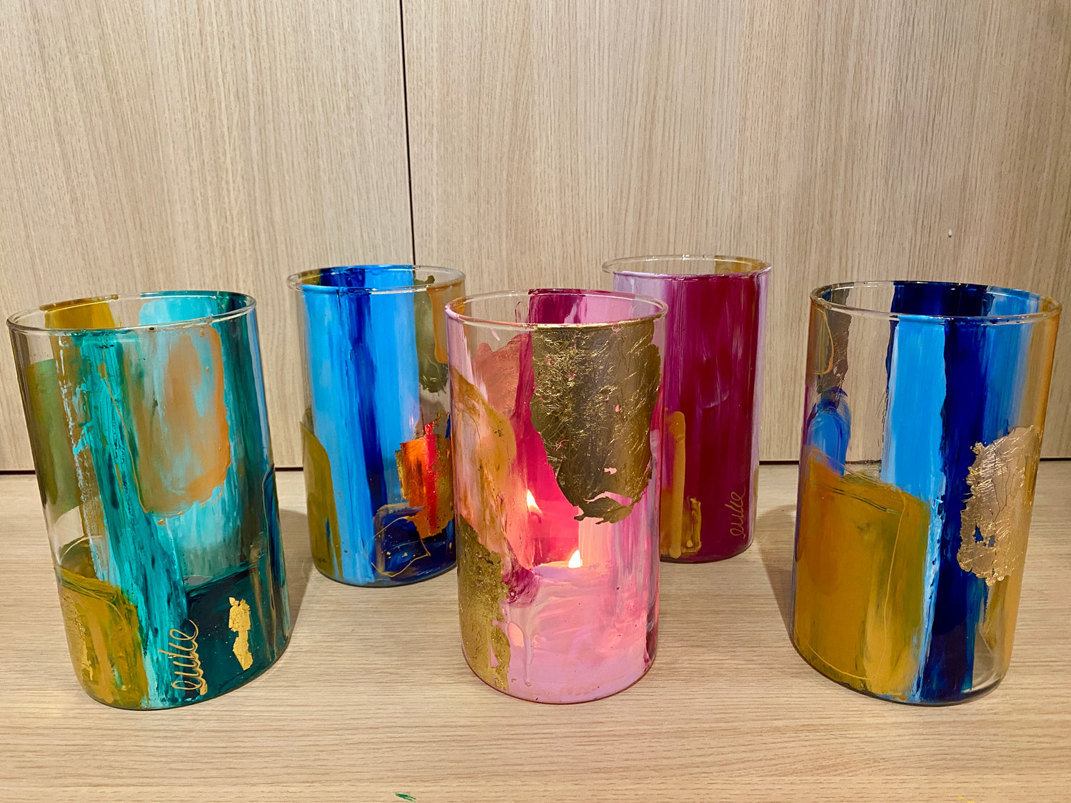 Unieke kunstvazen met beschilderd linnen doek. Elke vaas komt met een. certificaat en een persoonlijke boodschap.