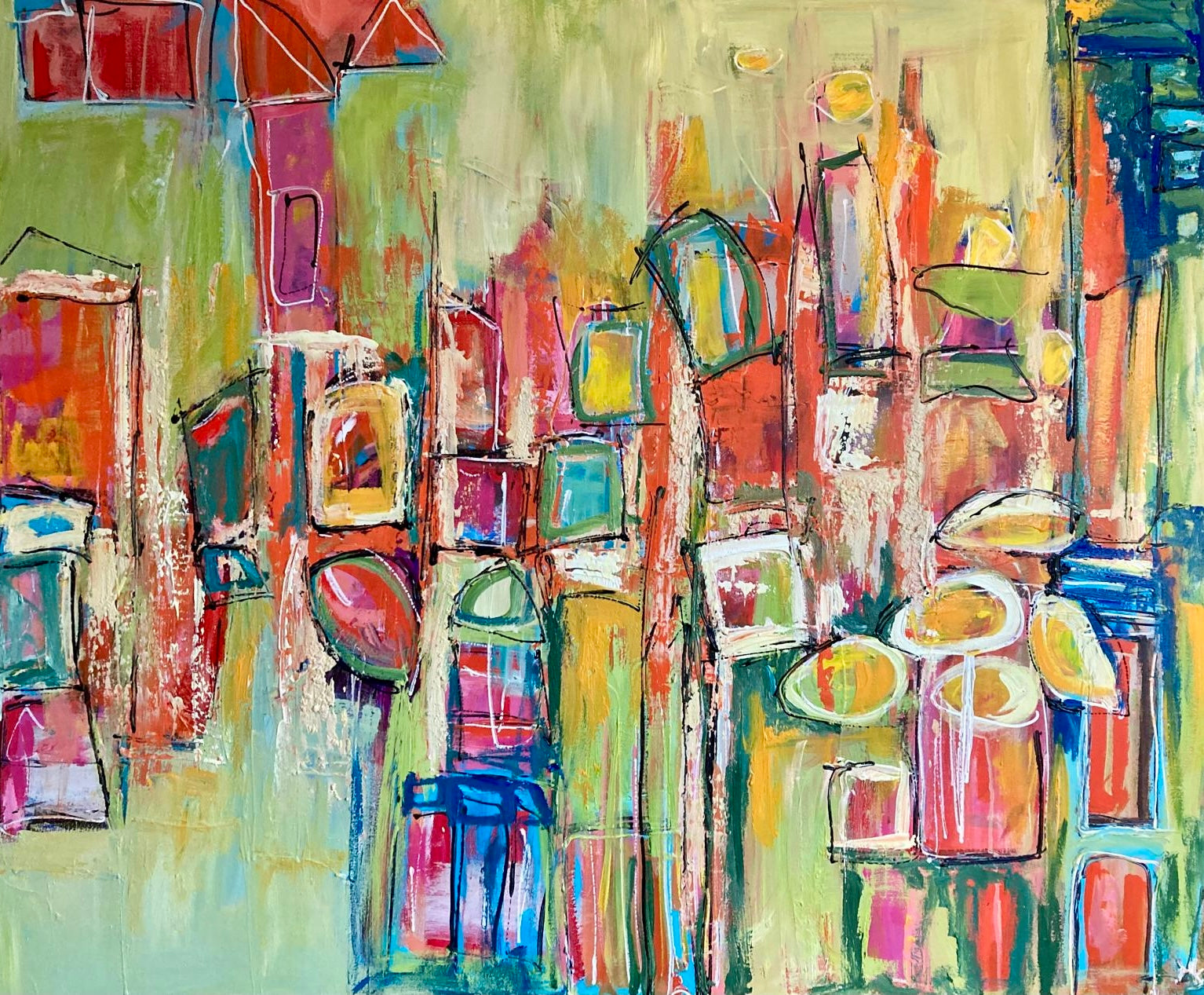 Ingrid maakt Abstracte kleurrijke werken; de beelden en sferen in haar gedachten vertaalt ze in kleur, vorm en compositie.